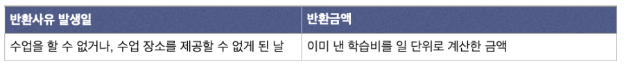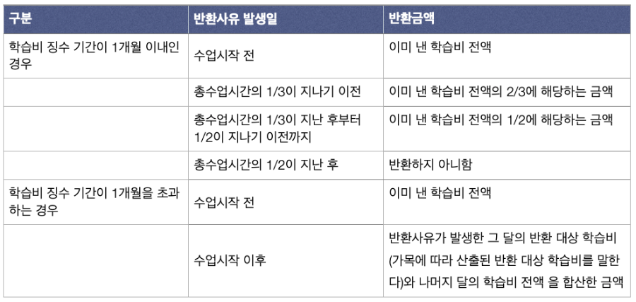 ① 학습비 반환 기준